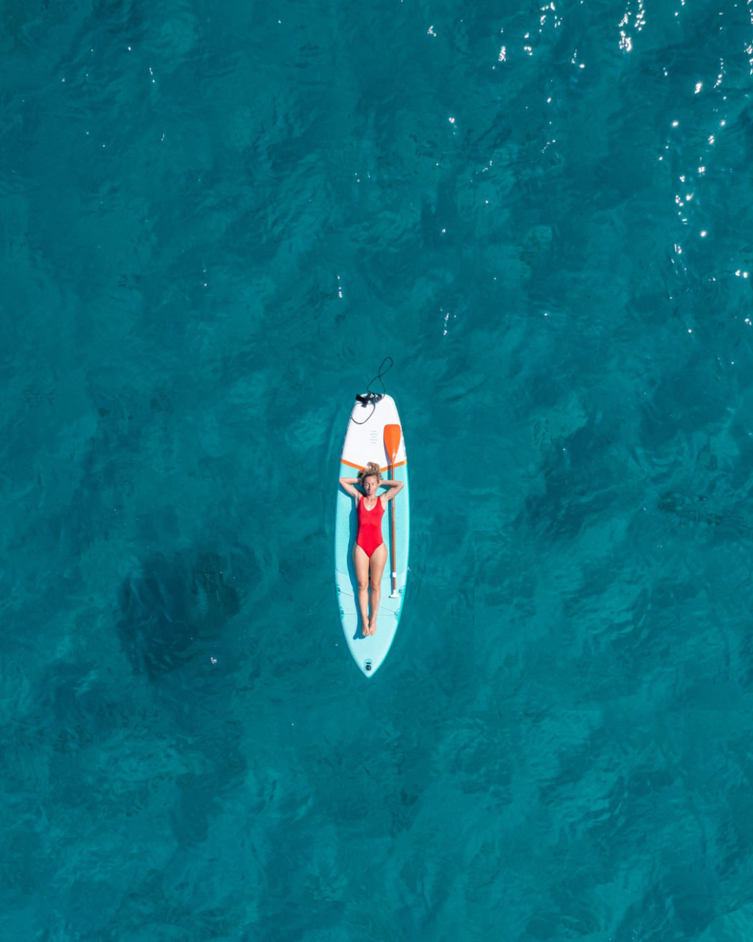 Morning vibes: coffee, sunshine, and stand-up paddleboarding right outside our door.